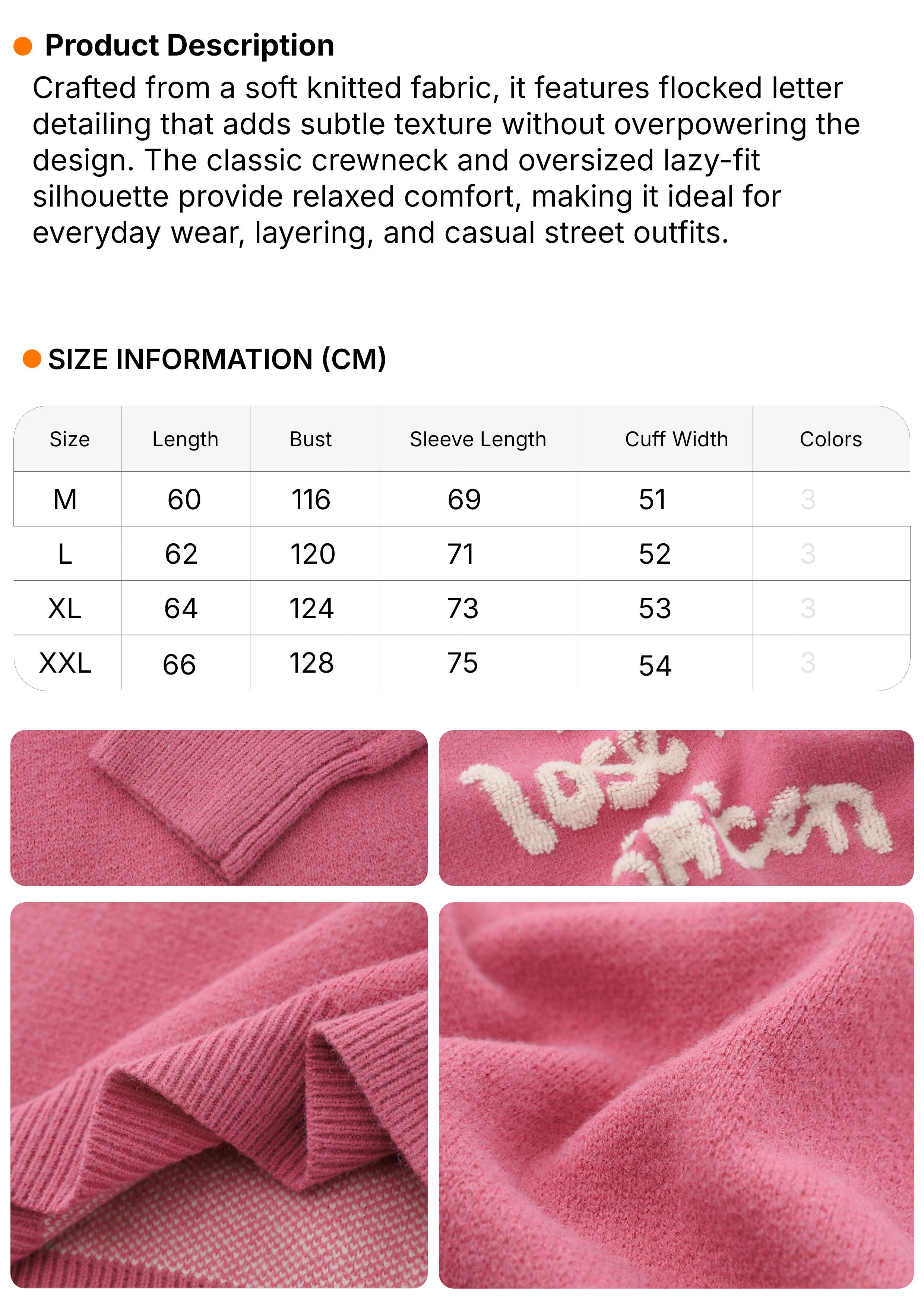 Designed for effortless street style, the 51 Hip-Hop Oversized Knit Sweater delivers a clean, minimalist look with a bold urban attitude. Perfect for autumn and winter, this sweater blends comfort, warmth, and modern hip-hop aesthetics. Crafted from a soft knitted fabric, it features flocked letter detailing that adds subtle texture without overpowering the design. The classic crewneck and oversized lazy-fit silhouette provide relaxed comfort, making it ideal for everyday wear, layering, and casual street outfits.
